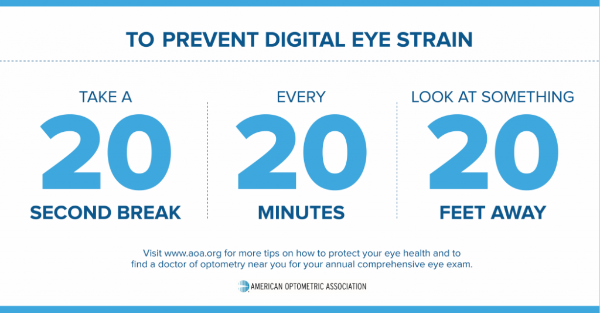 디지털 기기 사용 시 매 20분마다 20초간 눈을 감고 휴식을 취하고, 눈 운동을 통해 눈 주변 근육을 강화하는 것이 눈 피로를 줄이는 데에 도움이 됩니다.