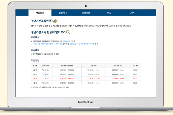 경기도 청년기본소득 청년지원금 요약