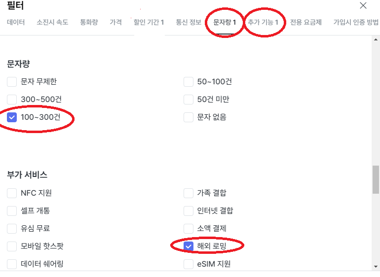 - 문자량을 선택후 100-300을 체크합니다. 물론 더 적게 받으시면 다른옵션을 선택해도 됩니다.